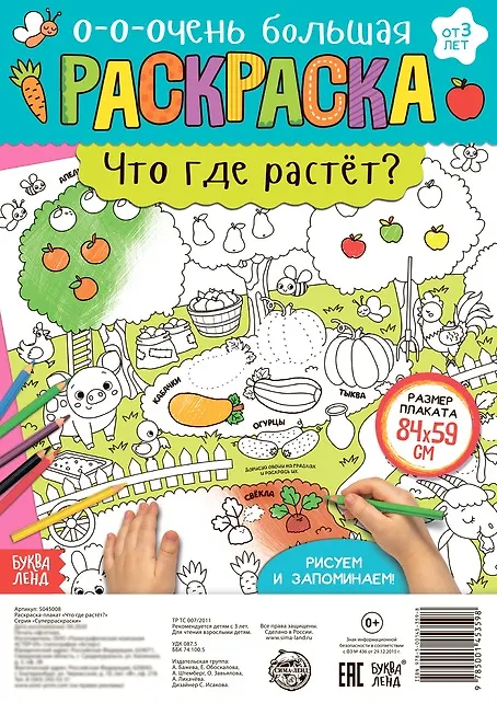 Раскраска-гигант «Что где растёт?» — отличный вариант для тех родителей, которые привыкли окружать своего малыша только лучшими и качественными вещами. За такой книжкой ваш ребёнок проведёт время с пользой и удовольствием, узнает много нового и интересного.