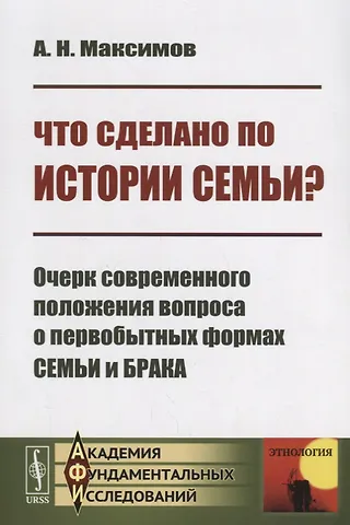 Вниманию читателей предлагается книга известного отечественного этнографа, одного из крупнейших теоретиков в области истории первобытного общества А.Н. Максимова (1872-1941), посвященная исследованию вопроса о первобытных формах семьи и брака. В работе рассматриваются различные теории и концепции, касающиеся истории семьи в древности. Автор описывает взгляды отечественных и зарубежных ученых по таким вопросам, как беспорядочное смешение полов в первобытном обществе, системы родства, различные формы брачных отношений (групповой брак, полиандрия, полигиния, левират), способы заключения брака и брачные обычаи, материнское право, экзогамия (запрет брачных отношений между членами родственного или