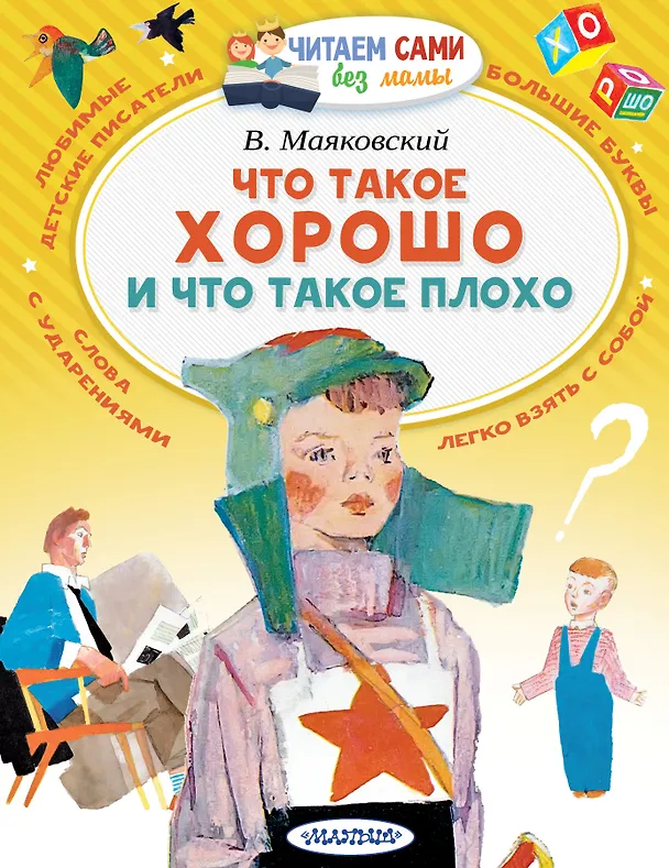 В книге «Что такое хорошо и что такое плохо» собраны самые знаменитые детские стихотворения В. Маяковского, которые должен прочитать каждый ребёнок. Необычный ритм стихотворений, великолепные иллюстрации Ювеналия Коровина позволят погрузиться в мир В. Маяковского и увидеть целый зоопарк, узнать, кто такой конь-огонь и что такое хорошо и что такое плохо, поиграть с тучками и товарищем птицей. В этом сборнике удобного формата слова с ударениями, что поможет детям научиться бегло читать и не делать ошибок в произношении.