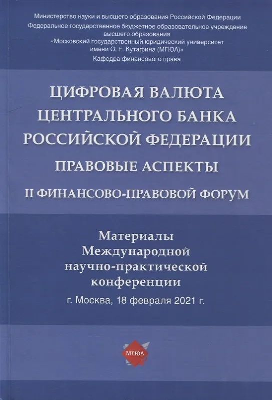 18 февраля 2021 г. в Московском государственном юридическом университете имени О. Е. Кутафина (МГЮА) под эгидой кафедры финансового права и Банка России прошел II ежегодный финансово-правовой форум «Цифровая валюта Центрального банка Российской Федерации: правовые аспекты».