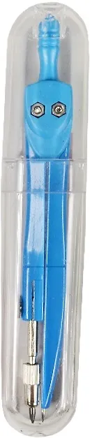Циркуль довольно качественный, нигде ничего не болтается, если не считать колесико сбоку, которое постоянно приходится прикручивать обратно. Циркуль помещен в крепкий пластиковый футляр, который с легкостью войдет в любой пенал. Из трех представленных на сайте цветов мне пришел синий циркуль.