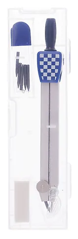 упаковка циркуля прозрачная, что даёт возможность видеть всё предметы которые находятся внутри. Циркуль прочно фиксируется, не болтается при использовании. Есть кейс со сменными стержнями . Сам футляр с закруглёнными углами , что гарантирует безопастность, ребёнок не поранился сам и не повредит другие принадлежности
