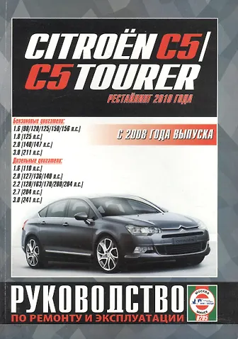 Citroen C5 /C5 Tourer. Руководство по ремонту и эксплуатации. Бензиновые двигатели. Дизельные двигатели. С 2008 года выпуска (рестайлинг 2010 года)