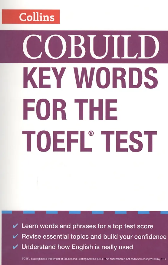 Collins COBUILD Key Words for the TOEFL Test is a brand-new vocabulary book containing all the essential words and phrases that students need to succeed in the TOEFL.Collins COBUILD Key Words for the TOEFL Test has been specially created for foreign learners of American English who plan to take the TOEFL to demonstrate that they have the required ability to communicate effectively in English in an academic environment, such as a university or college.Collins COBUILD Key Words for the TOEFL Test covers the words and phrases that students need to master in order to achieve the scores required by the top universities and employers.Key Words for the TOEFL Test is unique in that the vocabulary it