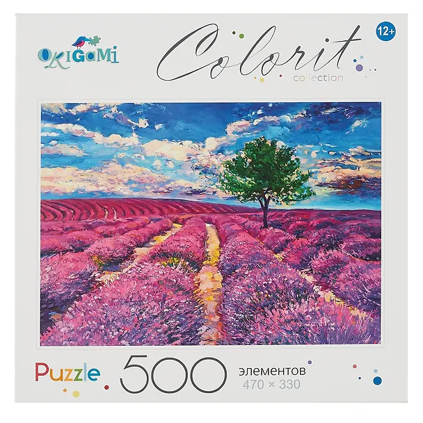 Понравилась насыщенность цветов на картинке - без вырвиглазности, которой страдают в последнее время картинки некоторых производителей. С лавандой готовьтесь немного повозиться, небо же собирается на раз благодаря разнообразию тонов. То, что это картинка, а не фото, разберёшь только при ближайшем рассмотрении, настолько прописаны все детали. Картон не особенно толстый, хоть и Колорит позиционируется как премиальная серия Оригами.