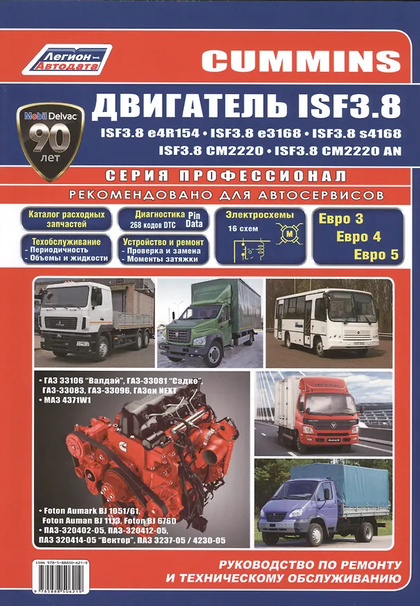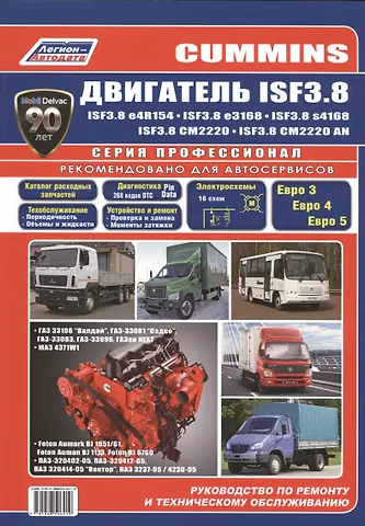 Руководство по ремонту CUMMINS ISF3.8 ЕВРО-3 (Common Rail, турбонаддув), ЕВРО-4 (Common Rail, турбонаддув, система рециркуляции отработавших газов EGR), ЕВРО-4 (Common Rail, турбонаддув, систе-В ма SCR), ЕВРО-5 (Common Rail, турбонаддув, система рециркуляции отработавших газов EGR, сажевый фильтр), ЕВРО-5 (Common Rail, турбонаддув, сажевый фильтр и система SCR), устанавливавшегося на автомобили: