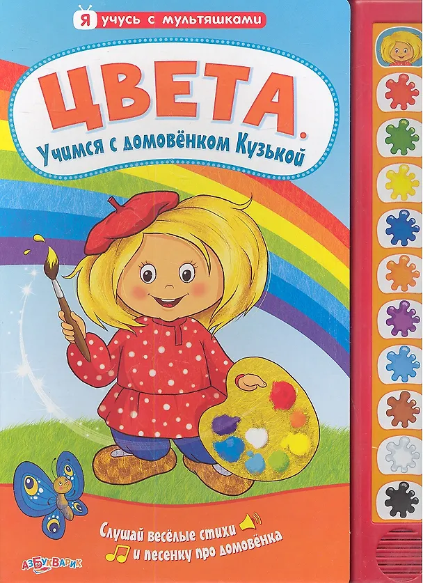 Теперь учится будет так же интересно, как смотреть мультики! Ведь с этой замечательной книжкой герой любимого мультфильма приходит в гости к малышам! Озорной домовёнок Кузька расскажет ребёнку про цвета, научит рисовать и раскрашивать картинки. А ещё малыш сможет послушать стихи и забавную песенку про Кузьку!