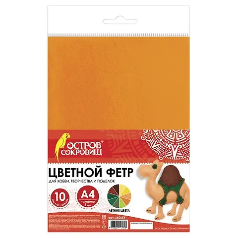 Цветной фетр А4, 10 цветов, ОСТРОВ СОКРОВИЩ
