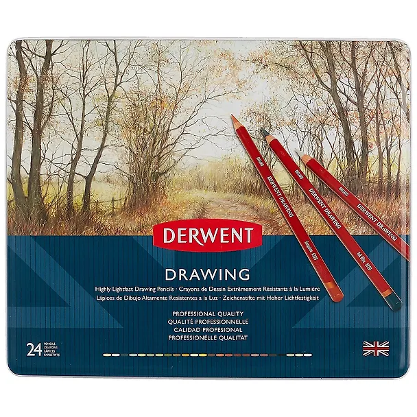 Набор цветных карандашей Derwent Drawing 24 цвета в металлической упаковке.