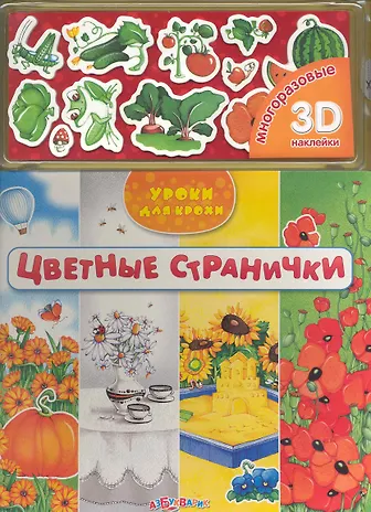 Цветные странички / (+ многоразовые 3D наклейки) (Уроки для крохи) (картон) (Белфакс)