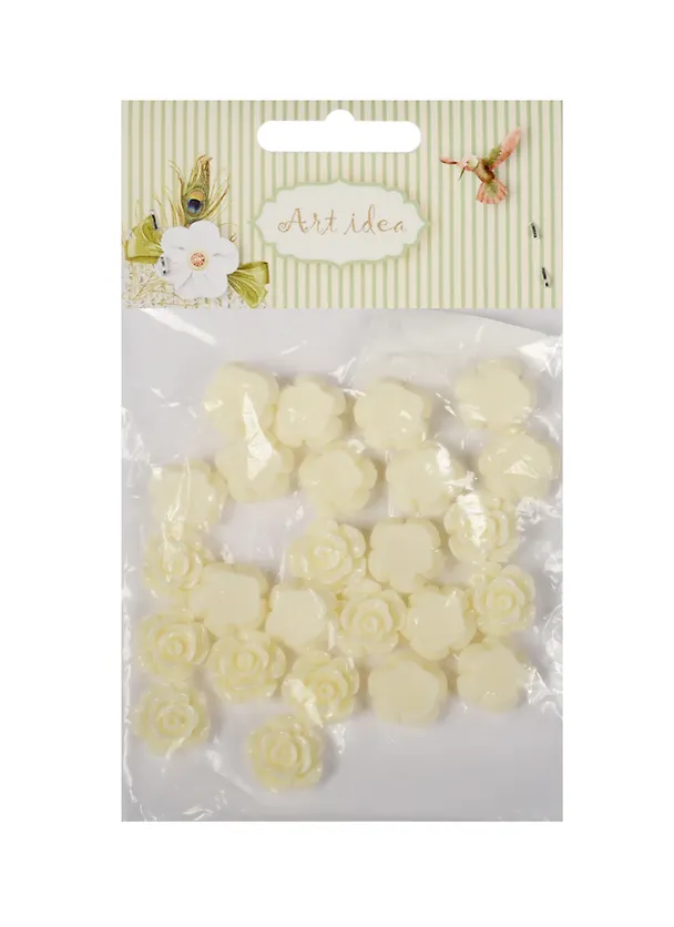 Цветочки пластиковые, 1.3 см, 25 шт/пакет, молочные (11-08631-3)
