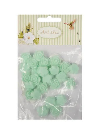 Цветочки пластиковые, 1.3 см, 25 шт/пакет, мятные (11-08631-2)
