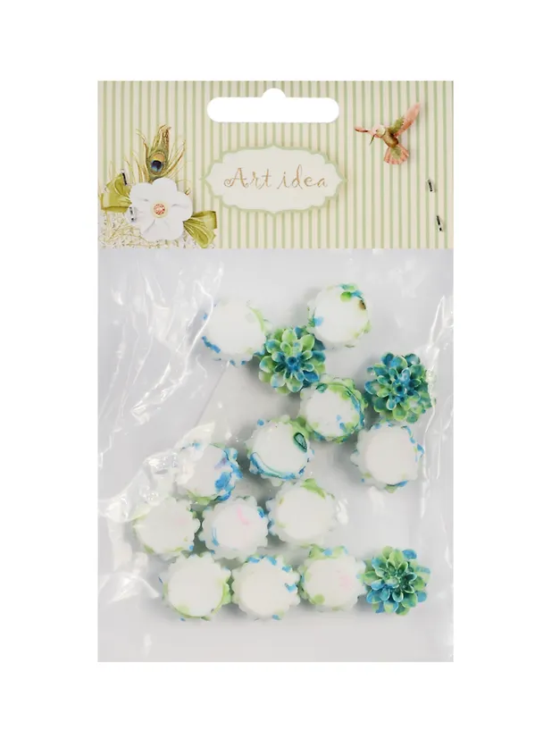 Цветы георгины пластиковые двухцветные, 1.5 см, 15 шт/пакет, болотный (11-08631-15)