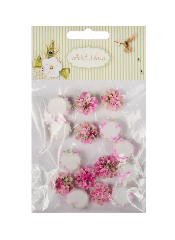 Цветы георгины пластиковые двухцветные, 1.5 см, 15 шт/пакет, розовый (11-08631-14)