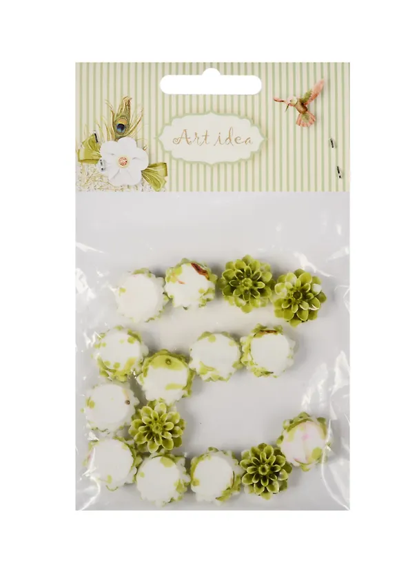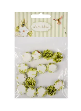 Цветы георгины пластиковые двухцветные, 1.5 см, 15 шт/пакет, салатовый (11-08631-17)