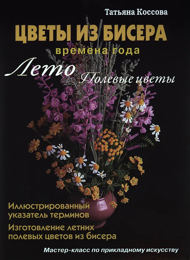 Цветы из бисера Времена года Лето Полевые цветы. Эта книга- продолжение учебного курса Татьяны Коссовой. Рассчитана на то, что первую вы уже читали- тут более сложные технологии, много тонкостей и нюансов. То есть уже приходится затратить усилия, и не мало. Но результат того стоит- такая красота получается. Зимой, в морозы сделать какой нибудь яркий весенний цветок и поставить на окно- самый верный способ поднять настроение. Советую, отличная книга.