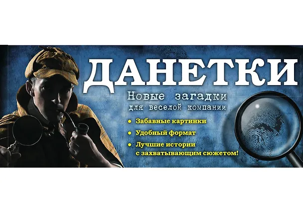 Почувствуйте себя настоящим детективом, расследующим чрезвычайно странные и загадочные дела! Вместе с всемирно известной игрой «Данетки» вы окунетесь в волнующий мир будоражащих сознание тайн, загадок и интриг. При разгадывании данеток вы можете задавать ведущему любые вопросы, ответом на которые могут быть только два слова: «да» и «нет». Новые неординарные данетки обязательно понравятся всем любителям необычных головоломок и загадок, желающих интересно провести время в веселой компании!