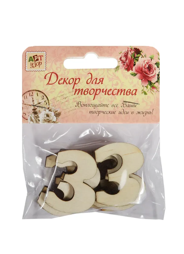 Декор для творч. дерево набор Цифры Тройка (1268436) (8шт.) (3,4х2,3см) (Арт Узор) (3+) (упаковка)