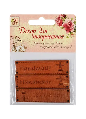 Декор для творч. дерево Ручная работа Париж (1268429) (3шт.) (6,5х1,5см) (Арт Узор) (3+) (упаковка)