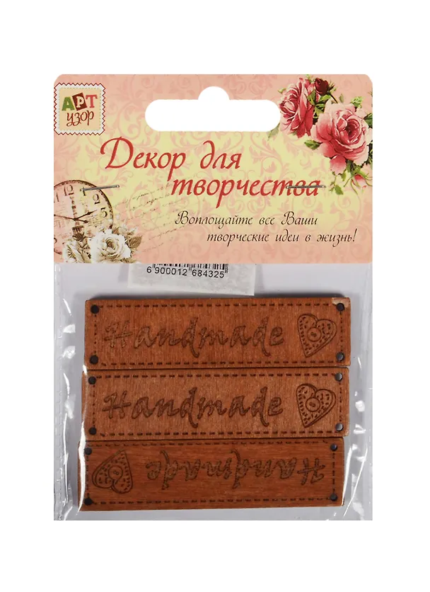 Декор для творч. дерево Ручная работа Сердце (1268432) (3шт.) (6,5х1,5см) (Арт Узор) (3+) (упаковка)