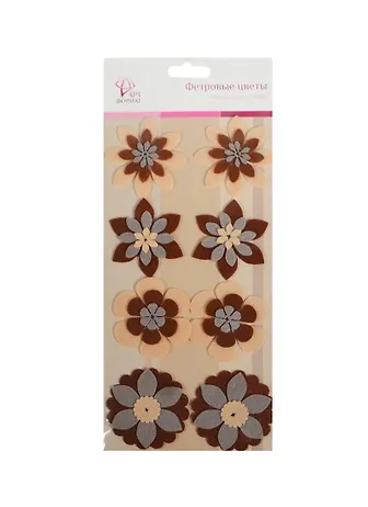 Декор фетровые цветы коричневые оттенки (AF07-131-04) (106566) (упаковка)
