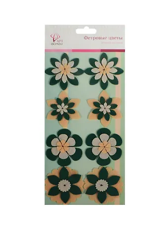 Декор фетровые цветы зеленые оттенки (AF07-131-01) (106563) (упаковка)