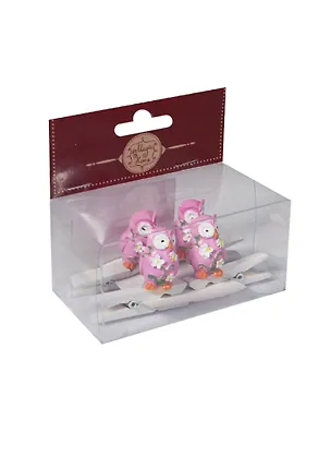Декор. прищепка Совушки фуксия (39436) (набор 4шт) (из древесины березы с декором из полирезины) (упаковка)