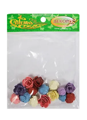 Декор Розочки ассорти маленькие (00009574) (15шт) (d=2см) (упаковка)