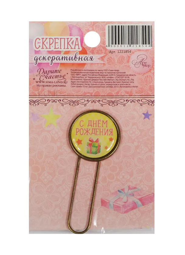 Декоративная скрепка для скрапбукинга С Днем рождения (1221854) (5,5х7см) (Арт Узор) (3+) (упаковка)
