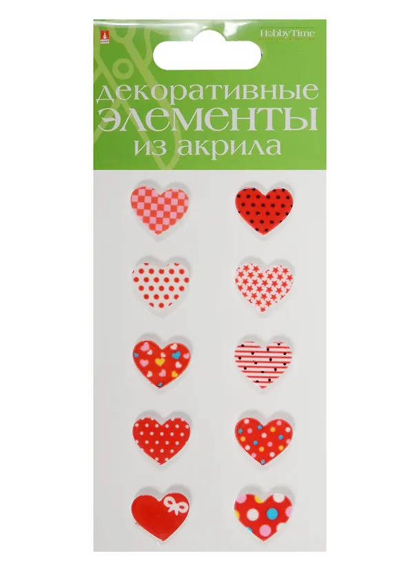 Декоративные элементы из акрила Набор №9 Сердечки красные (2-336/09) (10шт.) (Hobby Time) (упаковка)
