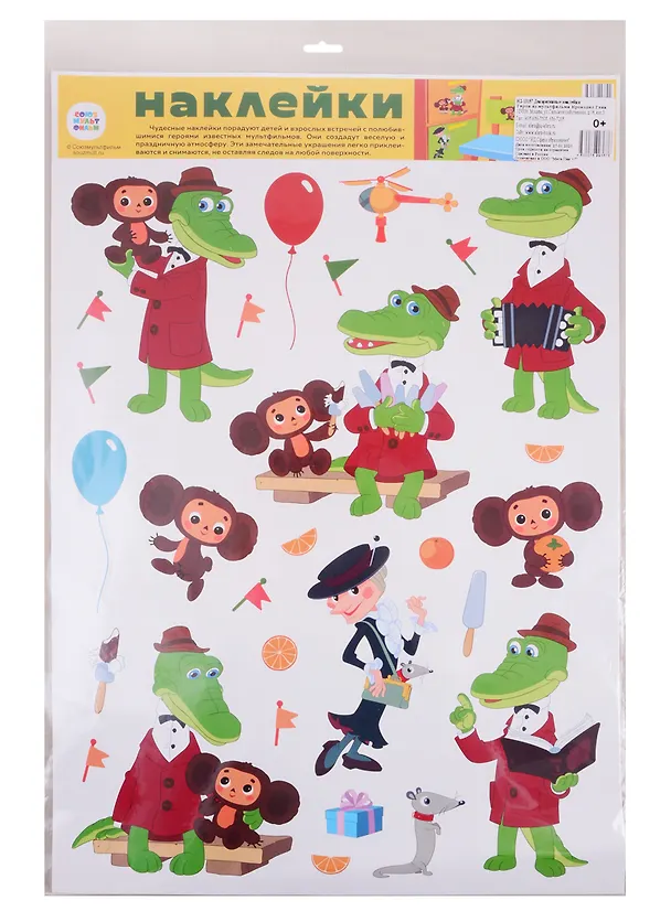 Декоративные наклейки "Герои из мультфильма Крокодил Гена" (в индивидуальной упаковке с европодвесом и клеевым клапаном)