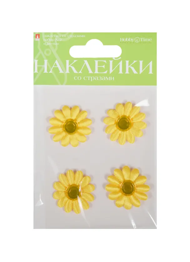 Декоративные наклейки из ткани со стразами Набор № 2 Цветы (2-331/02) (4шт.) (4 вида) (упаковка)