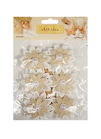 Декоративные прищепки холщевые Цветки двухслойные с жемчуженой (6шт) (11-00399-SC-223)
