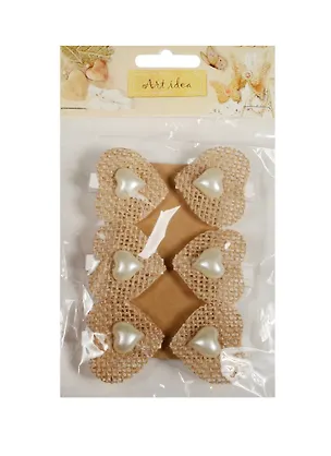 Декоративные прищепки холщевые Сердечки с жемчуженами (6шт) (11-00399-SC-2287)