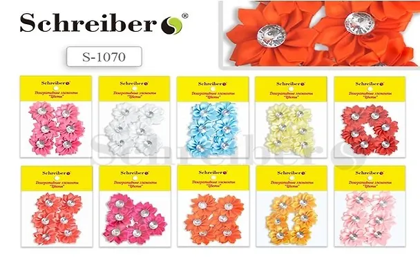Декоративные текстильные бантики-цветочки Schreiber/Шрайбер со стразами, 10*14см S 1070