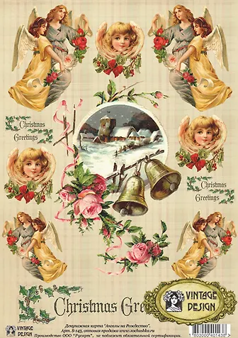 Декупажная карта Ангелы на Рождество (S-143) (упаковка)