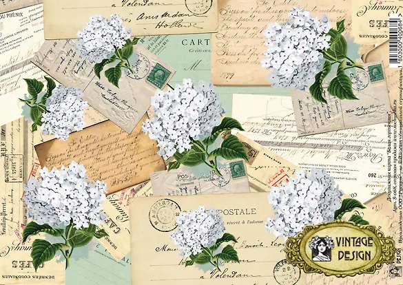 Декупажная карта "Белая гортензия" на тонкой бумаге, не требует предварительного выдерживания в воде для творчества.