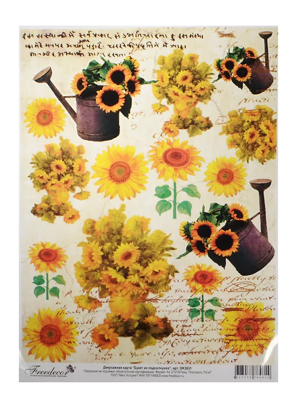 Декупажная карта Букет из подсолнухов А4 (DK3031) (упаковка)