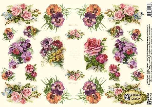 Декупажная карта Букеты (E-103) (упаковка)