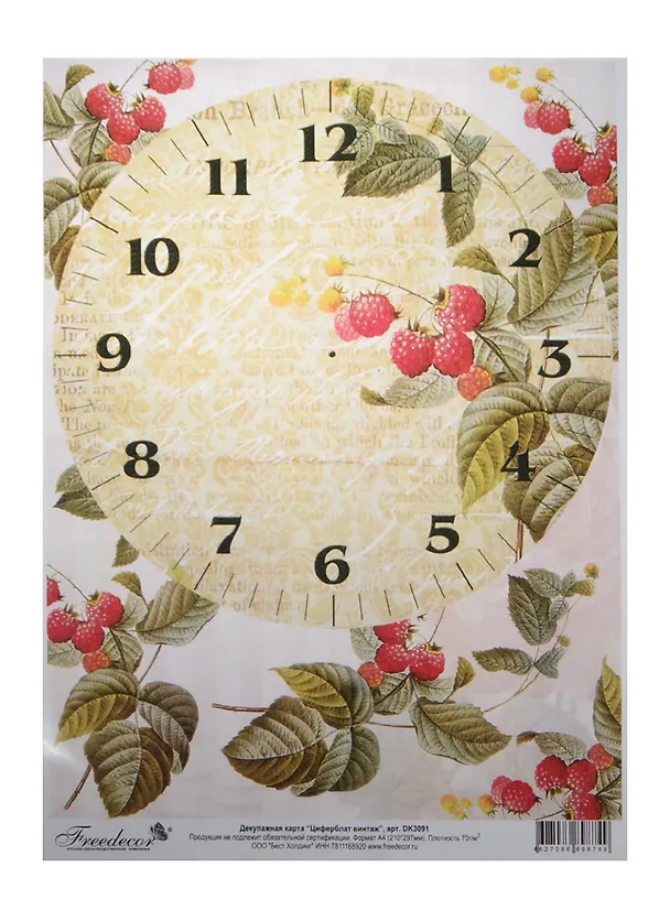 Декупажная карта Циферблат винтаж А4 (DK3091) (упаковка)