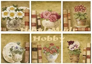 Декупажная карта Цветочные горшки и книги (27-0007) (А4)