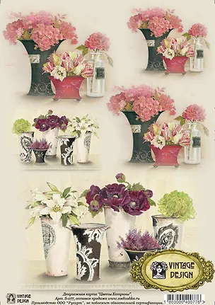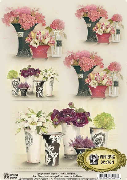Декупажная карта Цветы Катрины (S-077) (упаковка)