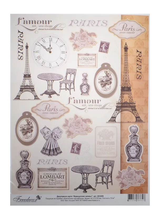 Декупажная карта Французские напевы А4 (DK3059) (упаковка)