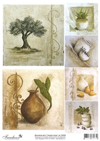 Переводная декупажная карта рекомендуется как для обратного декупажа, декупажа по стеклу и керамике с последующим запеканием в духовке при температуре от 160 градусов, так и для декупажа по дереву и металлу.