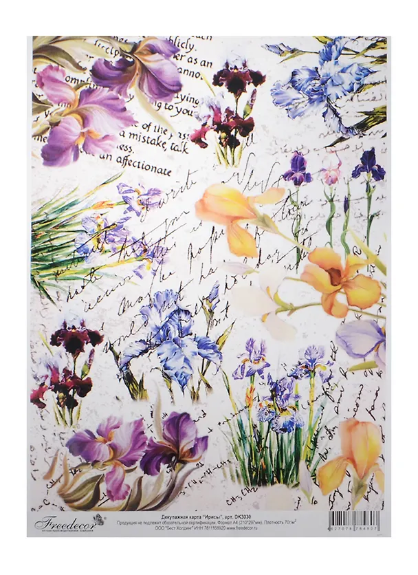 Декупажная карта Ирисы А4 (DK3030) (упаковка)