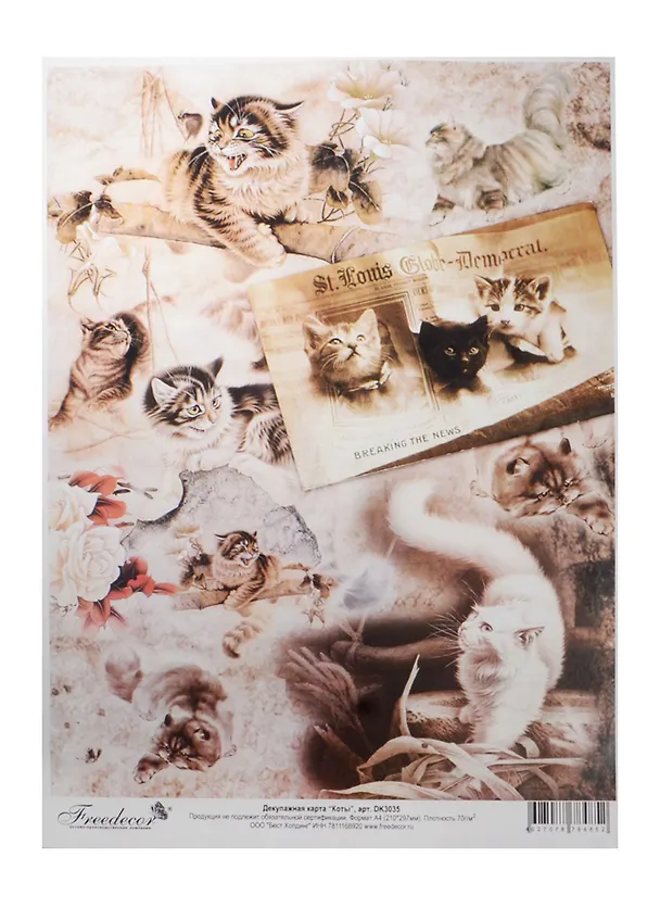 Декупажная карта Коты А4 (DK3035) (упаковка)