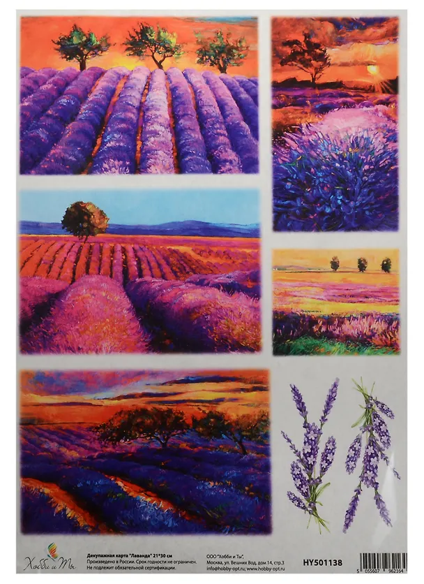 Декупажная карта Лаванда (HY501138) (21х30см)