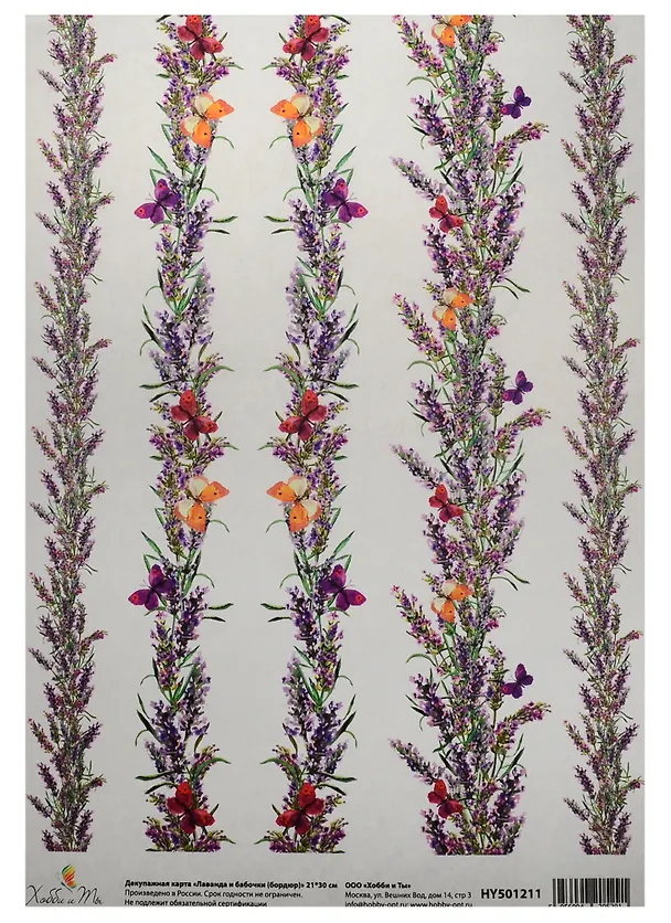 Декупажная карта Лаванда и бабочки (бордюр) 21*30см