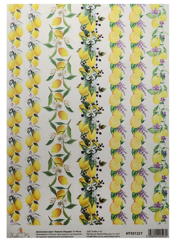 Декупажная карта Лимоны (бордюр) (HY501227) (21х30см)