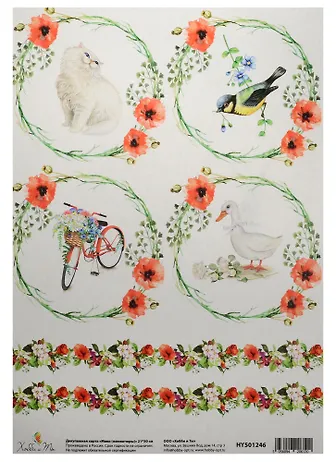Декупажные карты – это специально разработанная бумага для техники декупажа, которая лучше прилегает при приклеивании, даёт меньше складок, со временем не выгорает и не тускнеет. На них используется очень высокое качество печати, нет зернистости и цвета очень насыщенные.